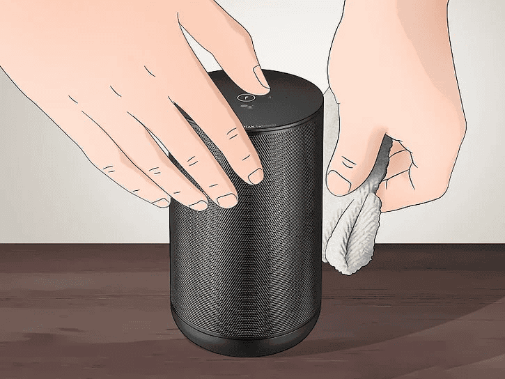 Sau đó, dùng khăn mềm và làm ẩm với nước sạch. Tuyệt đối, không nên để khăn còn quá ướt vì điều đó sẽ gây hỏng loa trong quá trình vệ sinh. Lau toàn bộ bên ngoài và bên trong của loa chỉ áp dụng áp lực nhẹ nhàng.