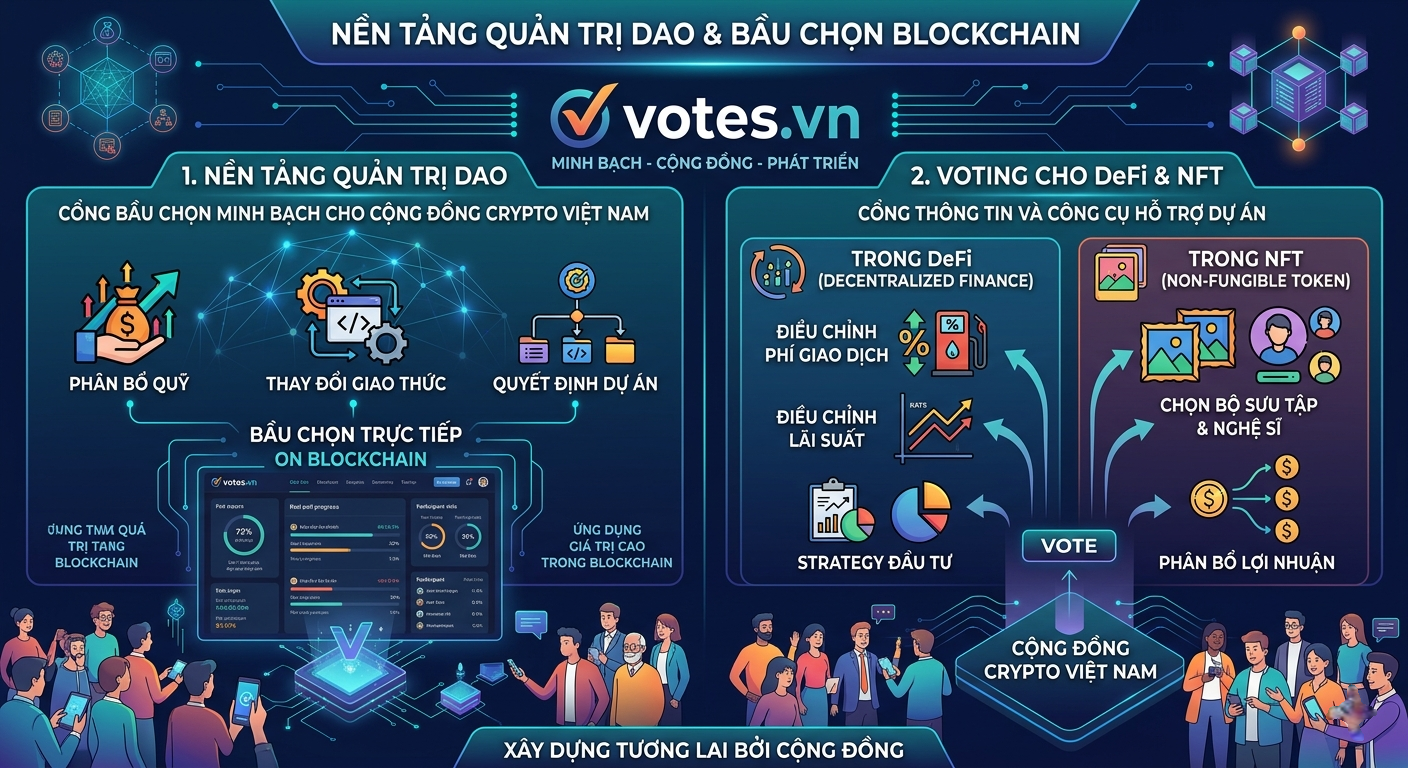 Trong kỷ nguyên tài chính số và blockchain, bầu chọn không chỉ là hành động dân chủ truyền thống mà còn là cơ chế cốt lõi để cộng đồng tham gia quản trị. Votes.vn ra đời với sứ mệnh trở thành cổng bầu chọn số minh bạch tại Việt Nam, nơi mọi tiếng nói đều được lắng nghe và ghi nhận.