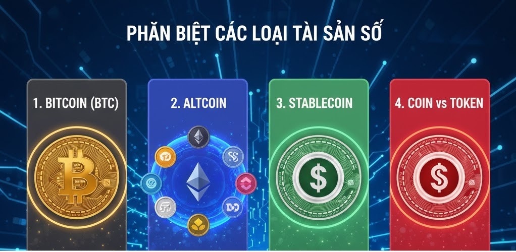 Phân Biệt Các Loại Tài Sản Số: Bitcoin, Altcoin, Stablecoin Và Token