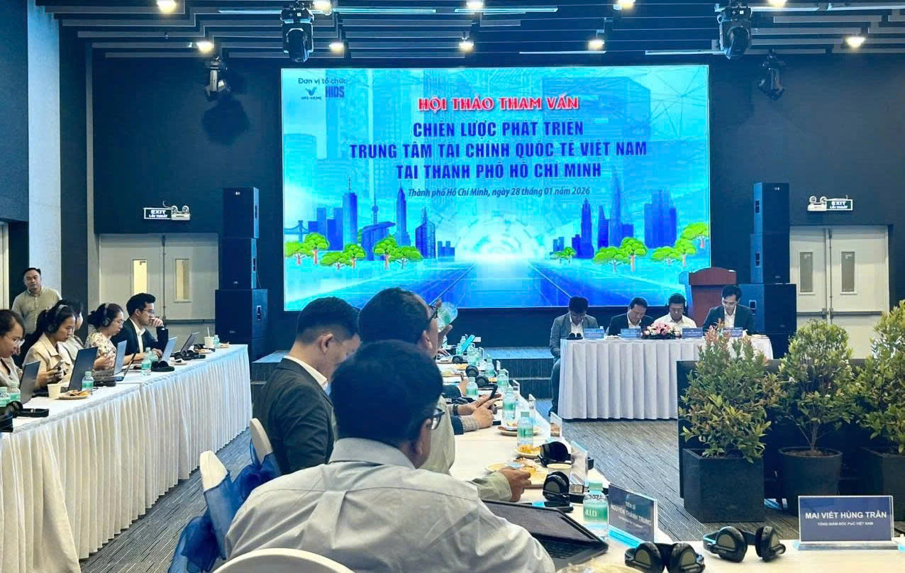 Chiều 28.1, Cơ quan điều hành Trung tâm tài chính quốc tế tại TP.HCM cùng Viện Nghiên cứu phát triển TP.HCM tổ chức hội thảo tham vấn Chiến lược phát triển Trung tâm tài chính quốc tế Việt Nam tại TP.HCM (VIFC-HCMC)