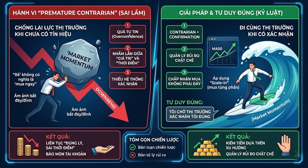 “Premature contrarian” không phải là sai hoàn toàn, mà là đúng tư duy nhưng sai thời điểm.